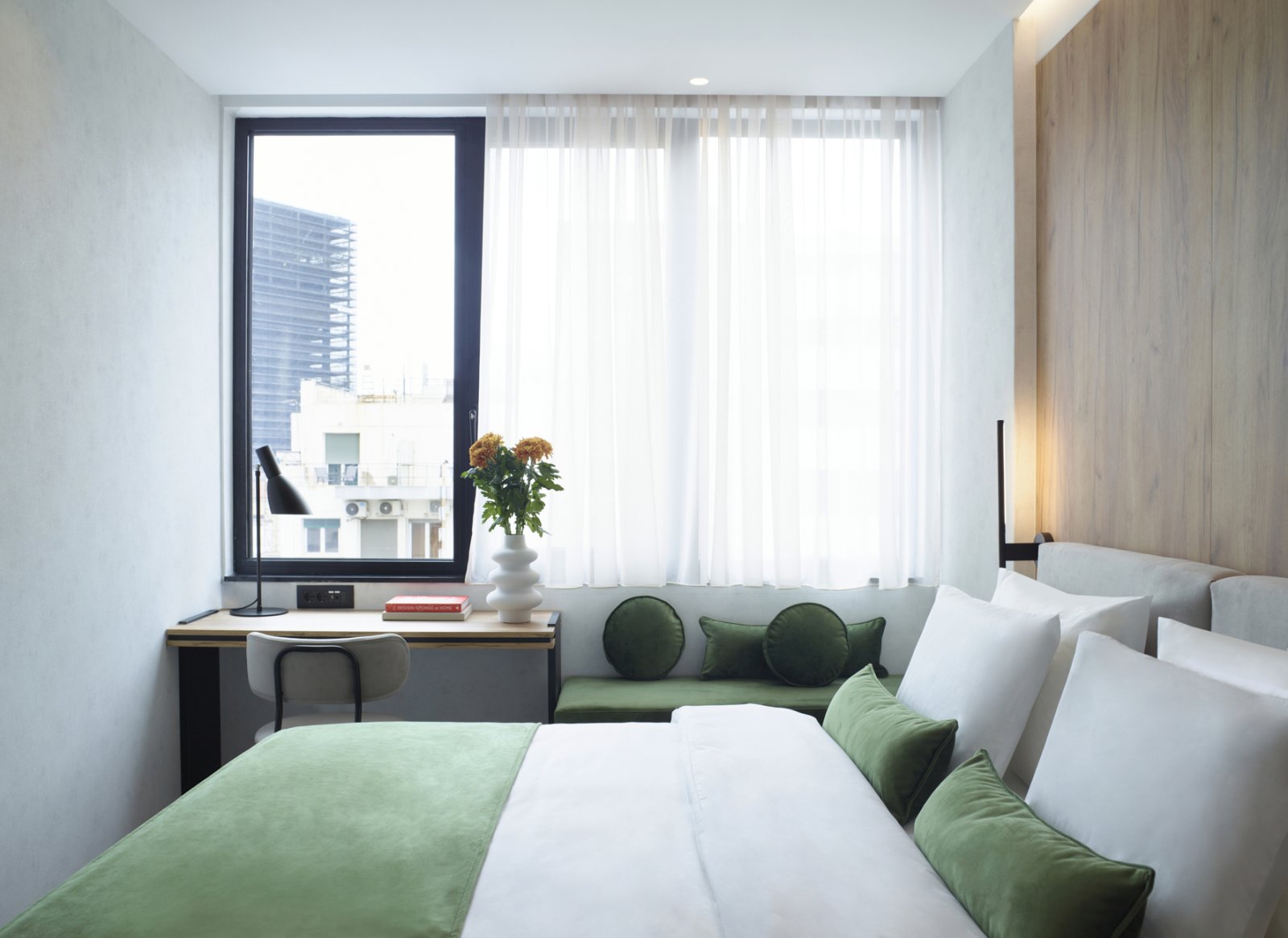 This chic guestroom with views of the city will remind you are in the middle of everything, and yet you need nothing more. The Port Double Room with city view combines contemporary furnishing with sleek lines featuring a double bed or twin beds and a walk-in bathroom with shower.